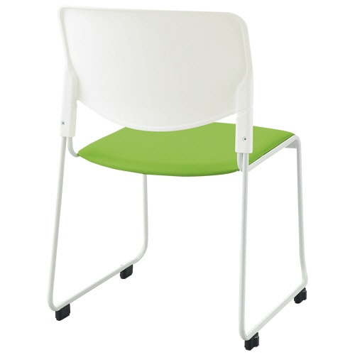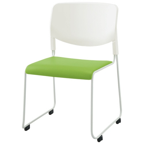 ●座は弾力性の高いウレタンフォームを使用したスタッキングチェア。色はグリーンです。