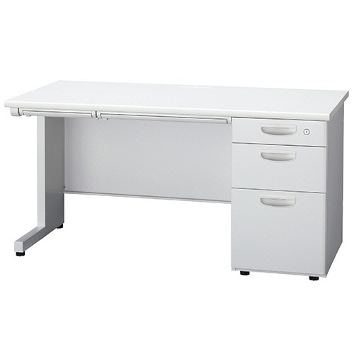 ●右袖が3段の幅1400mmホワイトの片袖机。