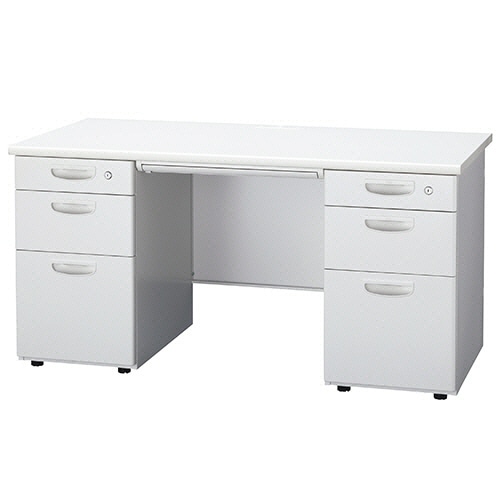 ●左右袖がともに3段の幅1400mmホワイトの両袖机。