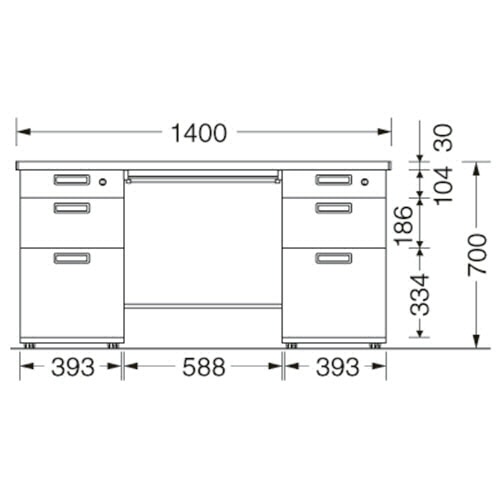 | 商品仕様 | ●タイプ/両袖机 ●外寸/W1400×D700×H700mm ●重量/66kg ●色/ナチュラル ●センター引出数/1 ●センター引出有効内寸/W557×D349×H39mm ●右袖引出段数/3段 ●右袖引出有効内寸/上段:W317×D430×H92mm、中段:W317×D430×H180mm、下段:W317×D430×H302mm ●左袖引出段数/3段 ●左袖引出有効内寸/上段:W317×D430×H92mm、中段:W317×D430×H180mm、下段:W317×D430×H302mm ●機能/コード落し、ラッチ機構、オールロック ●耐荷重/天板:約80kg ●材質/天板:スチール・メラミン化粧板(ポストフォーム加工)、本体:スチール(粉体塗装) ●脚部仕様(キャスター/アジャスター)/アジャスター ●カギ/左右各2本付(センター引出除く) ●製造国/日本 ●付属品/仕切板(大)2枚・(中)2枚・ペントレー2個 ●保証期間/外装・表面仕上げ:1年、機構部・可動部:2年、構造体:3年 ●その他仕様/●天板厚:30mm |