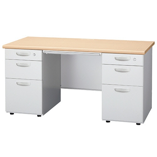 ●左右袖がともに3段の幅1400mmナチュラルの両袖机。