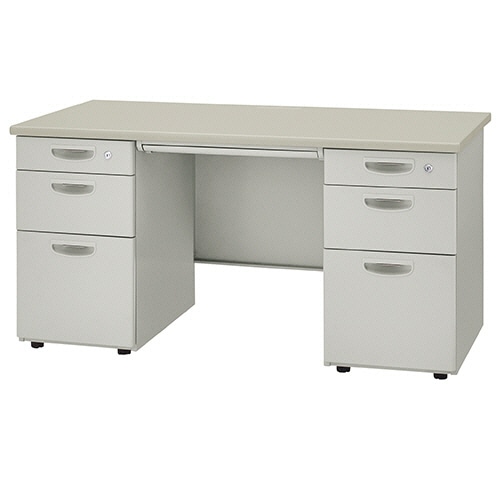 ●左右袖がともに3段の幅1400mmニューグレーの両袖机。