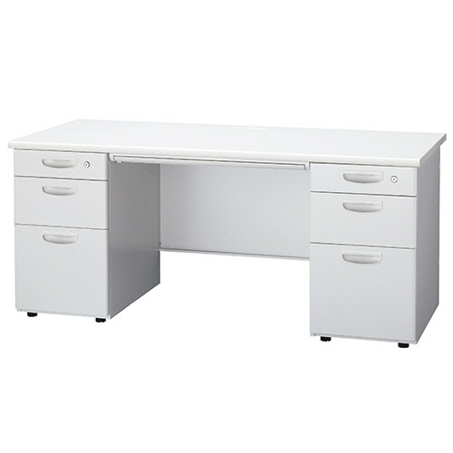 ●左右袖がともに3段の幅1600mmホワイトの両袖机。