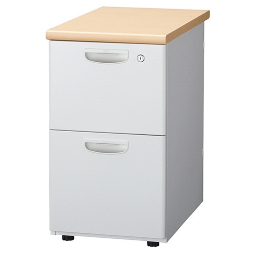 ライオン事務器 (N)LEO オフィスデスク 2段脇机 幅400×奥行700×高さ700mm ナチュラル(組立設置込) LER-L047E-A-MW 1台