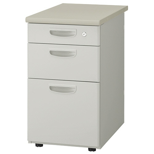 ライオン事務器 (N)LEO オフィスデスク 3段脇机 幅400×奥行700×高さ700mm ニューグレー(組立設置込) LER-L047E-B-HH 1台