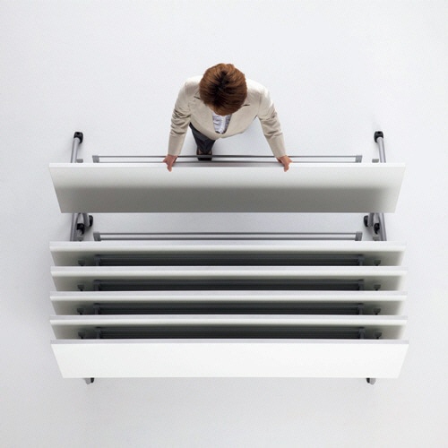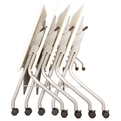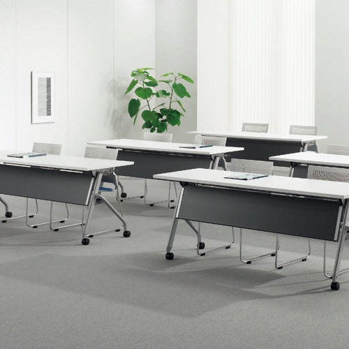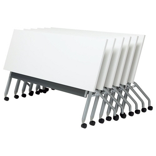 収納効率に優れた平行スタック式のフォールディングテーブル。