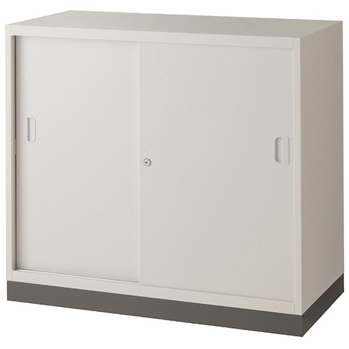 ライオン事務器 (N)LEOオフィスユニット 引戸2枚扉 下置き 2段 幅900×奥行450×高さ810mm ホワイト(組立設置込) LEWB-08S 1台