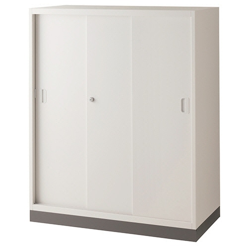 ライオン事務器 (N)LEOオフィスユニット 引戸3枚扉 下置き 3段 幅900×奥行450×高さ1110mm ホワイト(組立設置込) LEWB-11TS 1台