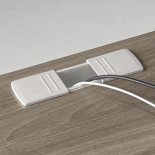 机上のコード類をすっきり納めるコード落としを両サイドに。