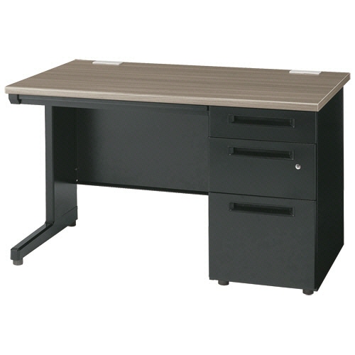 ●幅1200mm、天板がアッシュブラウン、本体がブラックの片袖机です。