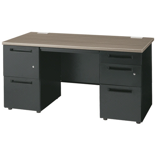 ●幅1400mm、天板がアッシュブラウン、本体がブラックの両袖机です。