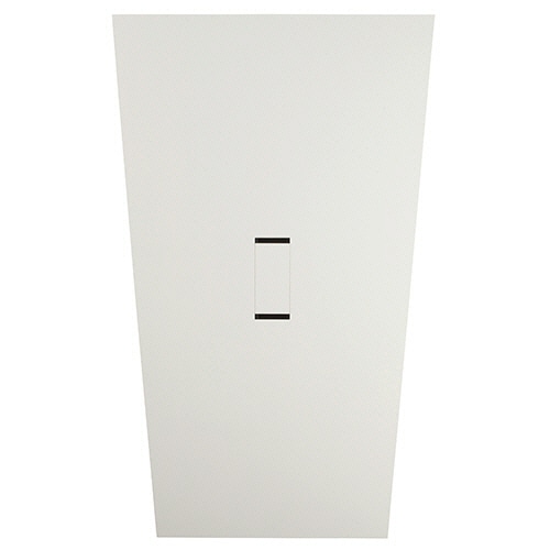 ●TV会議やホワイトボードに向かう打ち合わせで参加者が見えやすいように工夫したホワイトの台形テーブル。