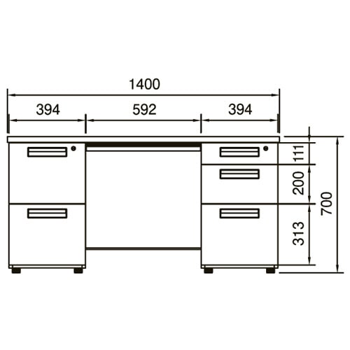 | 商品仕様 | ●タイプ/両袖机 ●外寸/W1400×D700×H700mm ●重量/67.2kg ●色/ライトグレー ●センター引出数/1 ●センター引出有効内寸/W560×D398×H32mm ●右袖引出段数/3段 ●右袖引出有効内寸/上段:W318×D420×H97mm、中段:W318×D420×H186mm、下段:W318×D486×H285mm ●左袖引出段数/2段 ●左袖引出有効内寸/上段:W318×D486×H285mm、下段:W318×D486×H285mm ●機能/コード落し、オールロック ●耐荷重/天板:約120kg ●材質/天板:パーティクルボード・メラミン化粧板、本体:スチール(粉体塗装) ●脚部仕様(キャスター/アジャスター)/アジャスター ●カギ/左右各2本付(センター引出除く) ●製造国/中国 ●付属品/仕切板4枚、ペントレー1個 ●その他仕様/●天板厚:30mm |