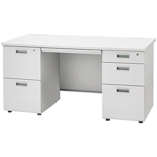 ●幅1400mm、ライトグレーの両袖デスクです。