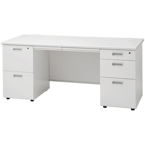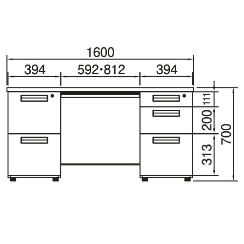 | 商品仕様 | ●タイプ/両袖机 ●外寸/W1600×D700×H700mm ●重量/69.5kg ●色/ライトグレー ●センター引出数/2 ●センター引出有効内寸/左:W317×D398×H32mm、右:W409×D398×H32mm ●右袖引出段数/3段 ●右袖引出有効内寸/上段:W318×D420×H97mm、中段:W318×D420×H186mm、下段:W318×D486×H285mm ●左袖引出段数/2段 ●左袖引出有効内寸/上段:W318×D486×H285mm、下段:W318×D486×H285mm ●機能/コード落し、オールロック ●耐荷重/天板:約120kg ●材質/天板:パーティクルボード・メラミン化粧板、本体:スチール(粉体塗装) ●脚部仕様(キャスター/アジャスター)/アジャスター ●カギ/左右各2本付(センター引出除く) ●製造国/中国 ●付属品/仕切板4枚、ペントレー1個 ●その他仕様/●天板厚:30mm |