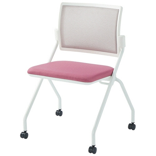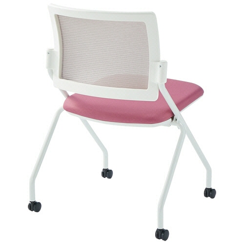 ライオン事務器 (N)LEO ネスティングチェア ホワイトフレーム 背:メッシュ 座:ピンク LE-250WF-P 1脚