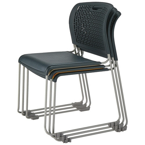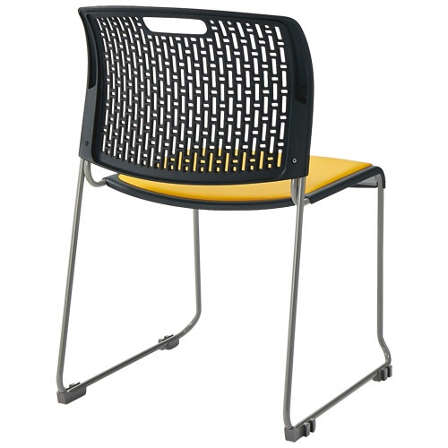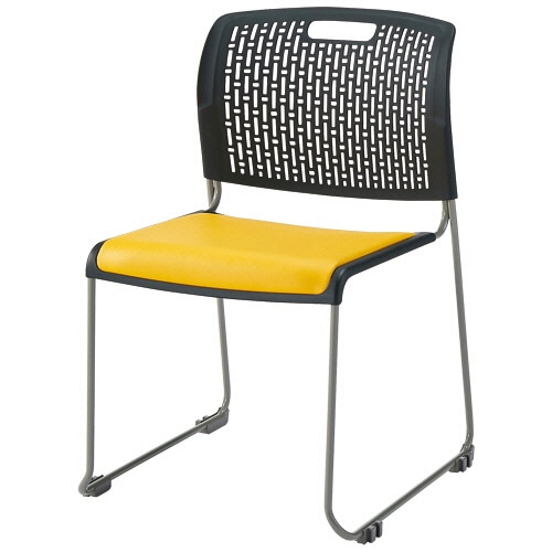 ●8脚までスタッキングできるイエローのPVCレザーチェア。