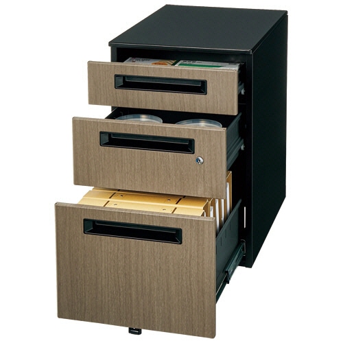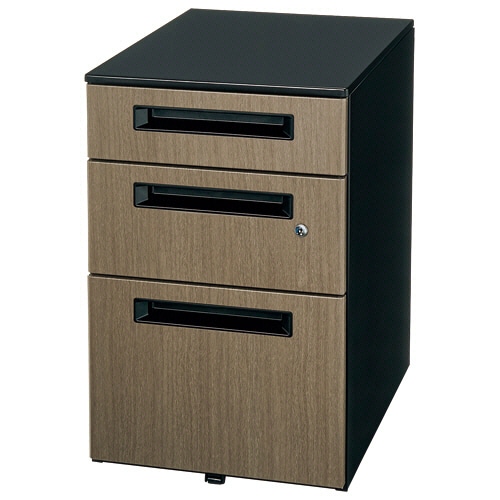 エランサ (N)オフィスデスク 3段ワゴン ブラック/アッシュブラウン (組立設置込) DL-043S-BM 1台