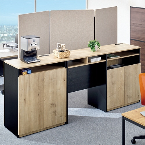 落ち着いた色味でオフィスに馴染む、木製カウンター。