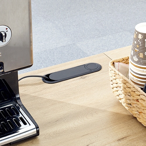 落ち着いた色味でオフィスに馴染む、木製カウンター。