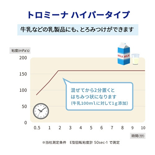 ●とろみ剤添加後の立ち上がりが早く、とろみのつけすぎが防止できます。