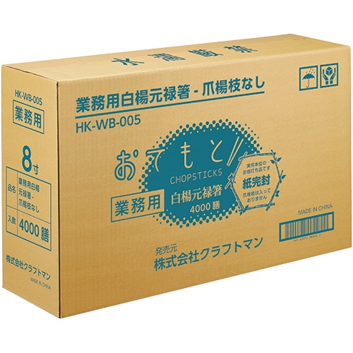 クラフトマン 業務用白楊元禄紙完封箸 爪楊枝なし HK-WB-005 1セット(4000膳:100膳×40パック)