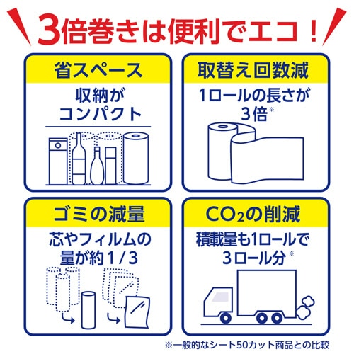 1ロールの長さが3倍!150カットで長尺タイプのキッチンペーパーです!