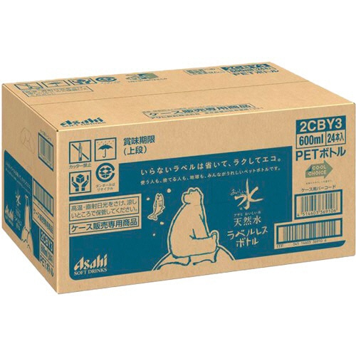 アサヒのおいしい水天然水 ラベルレスボトル。味はそのまま!環境に配慮した省パッケージタイプ。