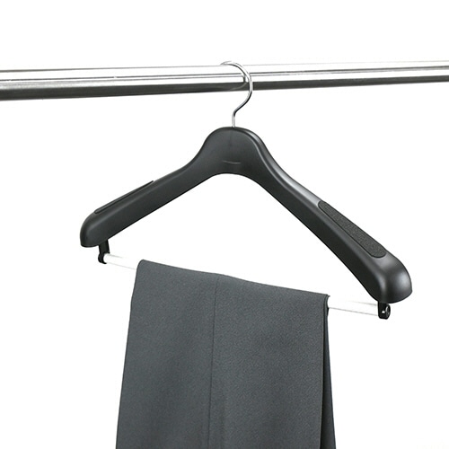 商品仕様 | ●寸法/W430×D×H260mm ●厚さ/46mm ●色/ブラック ●材質/本体・ホルダー:PP、バー:PVC、フック:スチール、肩パッド:PE ●備考/※厚さは肩厚です。 |