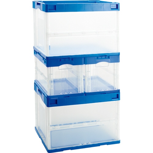TANOSEE 折りたたみコンテナ フタ一体型 20L ダークブルー/透明 1セット(10台)