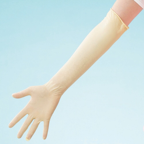 【食品衛生法適合】全長48cmの天然ゴム極薄手袋です。