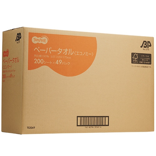 TANOSEE ペーパータオル(エコノミー) 200枚/パック 1セット(49パック)