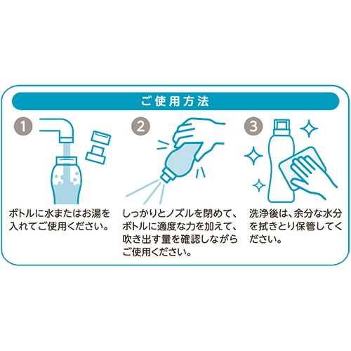 シャワー状に噴射できる三つ穴ノズルの洗浄ボトル。
