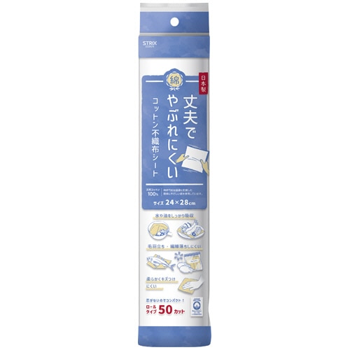 ストリックスデザイン 丈夫でやぶれにくいコットン不織布シートロール 50カット/ロール SA-184 1セット(3ロール)