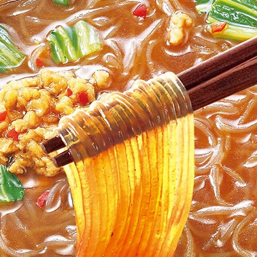 ●原材料/[原材料]春雨(でん粉、醸造酢)(中国製造)、しょうゆ、食塩、オイスターソース、中国しょうゆ、植物油脂、香辛料、トマトケチャップ、紹興酒、豚脂、乾燥キャベツ、チキン調味料、大豆加工品、卵加工品、乾燥キクラゲ、砂糖、乾燥ねぎ、魚介エキス、蝦醤、XO醤、全卵粉 [添加物]調味料(アミノ酸等)、増粘剤(加工でん粉、増粘多糖類)、重曹、カラメル色素、香料、酒精、カロチノイド色素、香辛料抽出物、甘味料(カンゾウ、スクラロース、アセスルファムK)、酸化防止剤(ビタミンE)、(一部にえび・小麦・卵・乳成分・いか・ごま・大豆・鶏肉・豚肉を含む)