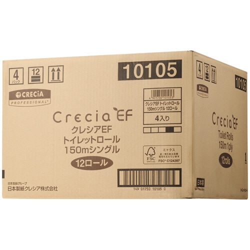 日本製紙クレシア クレシア EFトイレットロール シングル 芯あり 150m 1セット(48ロール:12ロール×4パック)