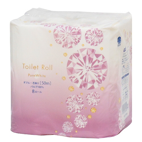 ●肌触りやわらかエンボス仕上げ。ピュアホワイト・ダブル、50m×8ロール。6パックのセットです。