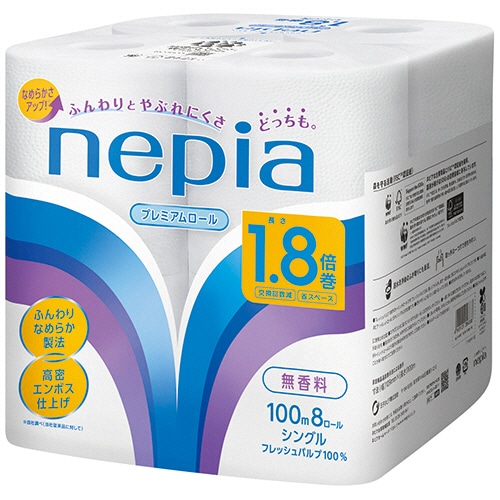 王子ネピア ネピア トイレットロール 1.8倍巻 シングル 芯あり 100m 1セット(64ロール:8ロール×8パック)
