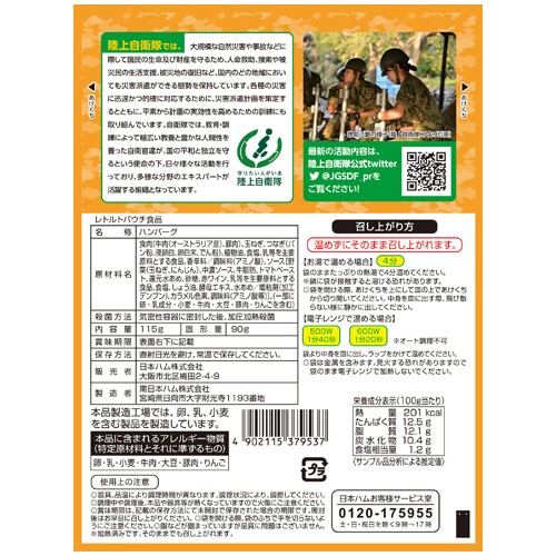 日本ハム 陸上自衛隊戦闘糧食モデル 煮込みハンバーグ 5年保存 1セット(20食)