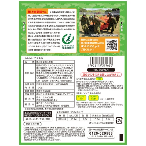 日本ハム 陸上自衛隊戦闘糧食モデル 鶏と根菜のうま煮 5年保存 1セット(20食)