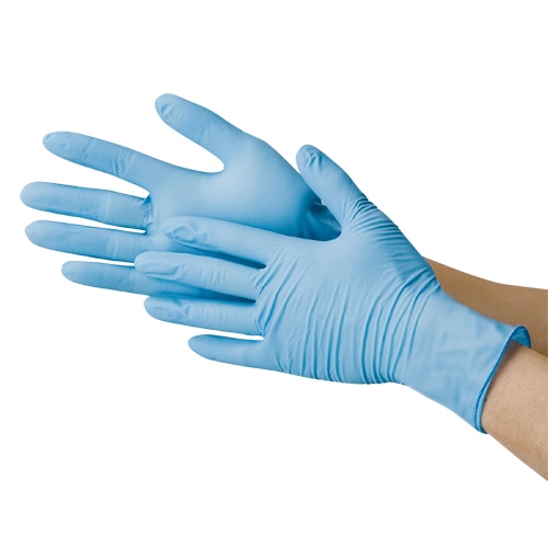 | 商品仕様 | ●仕様/未滅菌 ●サイズ/M:全長240±5×手のひら幅95±5×中指の長さ83±5mm ●色/ブルー ●素材/ニトリルゴム ●1ケース=100枚入×10箱 |