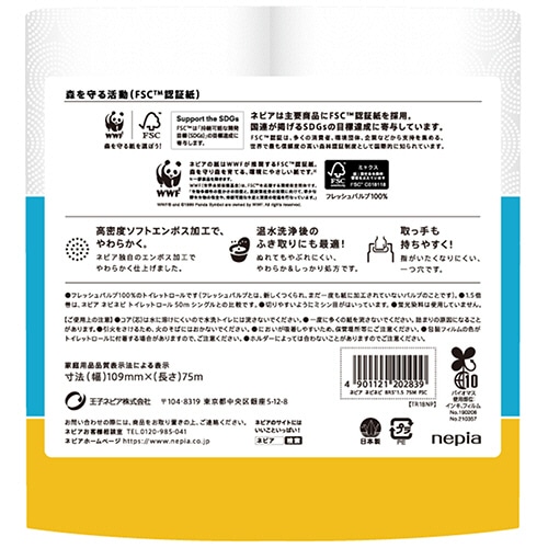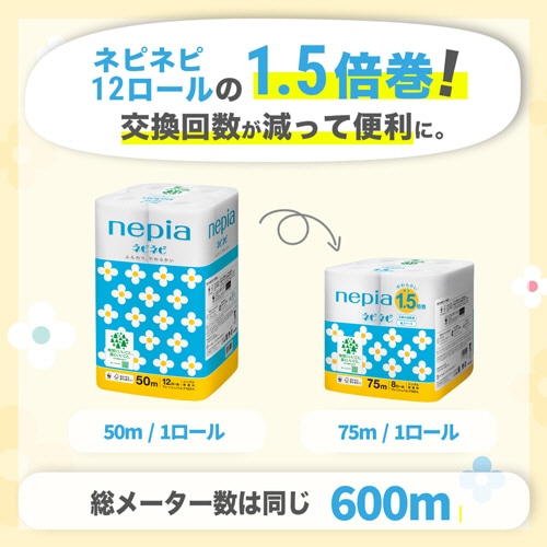 王子ネピア ネピネピ トイレットロール 1.5倍巻 シングル 芯あり 75m 無香料 1セット(64ロール:8ロール×8パック)