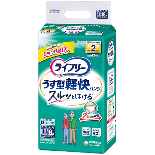 ユニ・チャーム ライフリー うす型軽快パンツ LL 1セット(72枚:18枚×4パック)