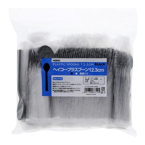 シモジマ HEIKO プラスチックスプーン 12.3cm 黒 単袋 #004513026 1セット(1000本:100本×10パック)