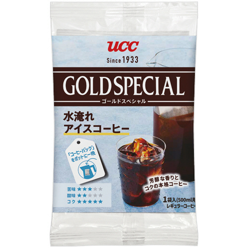 | 商品仕様 | ●種類/水淹れアイスコーヒー ●内容量/30g ●賞味期限/商品の発送時点で、賞味期限まで残り180日以上の商品をお届けします。 ●その他仕様/●1バッグ500mL用 ●備考/※内容量は1バッグあたり。 ※メーカー都合により、パッケージデザインおよび仕様が変更になる場合がございます。 ●シリーズ名/ゴールドスペシャル |