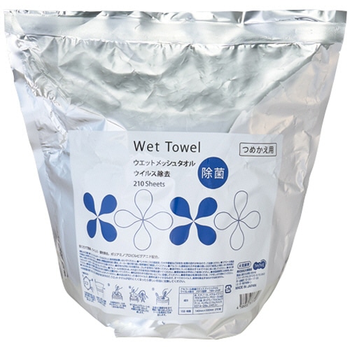 TANOSEE アルコール除菌ウエットメッシュタオル ウイルス除去 大容量バケツタイプ 大判・厚手 詰替 1セット(1680枚:210枚×8パック)