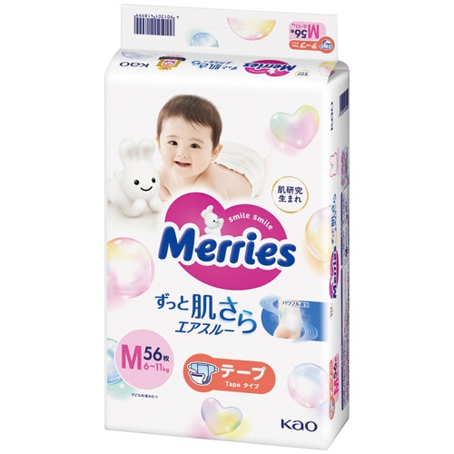 花王 メリーズ ずっと肌さらエアスルー テープタイプ Mサイズ 1パック(56枚)