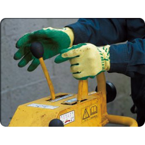 天然ゴムを手のひらにコーティングした通気性のよい作業手袋。