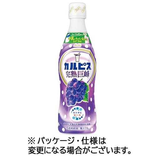 | 商品仕様 | ●タイプ/乳酸菌飲料 ●味/完熟巨峰 ●容器/プラスチックボトル ●内容量/470ml ●賞味期限/商品の発送時点で、賞味期限まで残り90日以上の商品をお届けします。 ●その他仕様/●希釈タイプ ●備考/※メーカー都合により、パッケージデザインおよび仕様が変更になる場合がございます。 ●シリーズ名/カルピス |