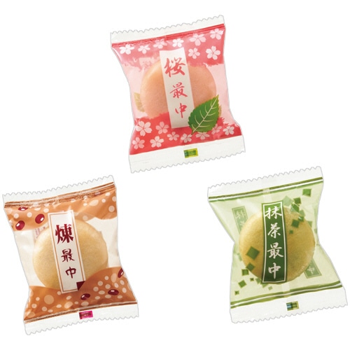 ●ひと口もなかの食べきりサイズです。桜、抹茶、煉最中の3種類のアソート13個×10パックのセット。